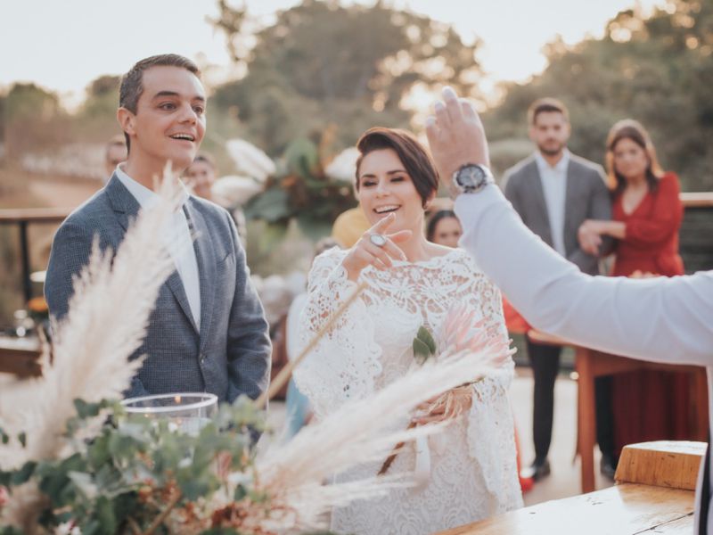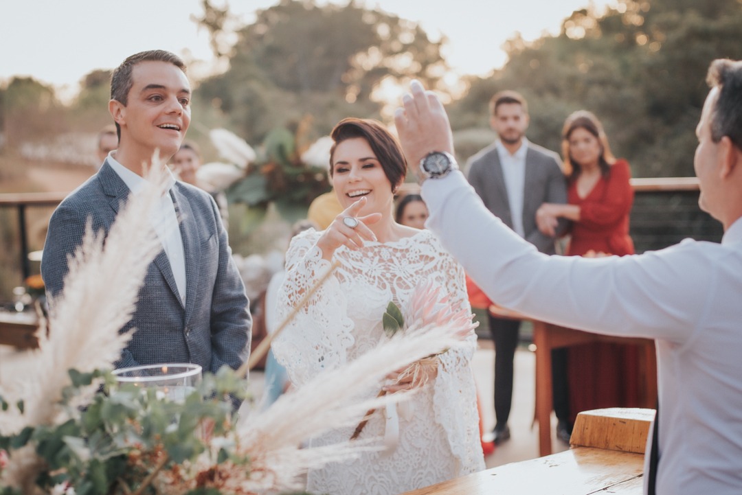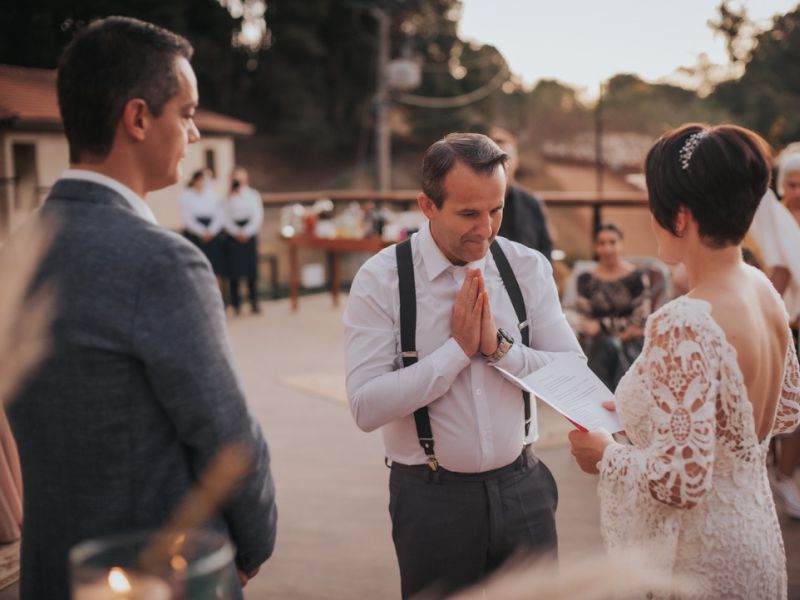 É difícil traduzir em palavras.. Os convidados ficaram apaixonados com a sua fala, a forma como foi conduzida a celebração. Todos, sem exceção, me perguntaram quem você era, que sua fala é leve, contando realmente a nossa história.. E como bom jornalista que é, fez tudo com maestria. Você é incrível!A cada reunião, conhecendo um pouco de nós, você montou uma narrativa contando com detalhes a nossa vida para todos os presentes. Foi muito lindo...Cada pessoa que me manda mensagem não deixa de falar sobre o buffet, o celebrante e o cerimonial.. São os 3 fornecedores mais requisitados! rsrsTe agradeço por T-U-D-O, pela paciência, pelos encaixes de horários para as reuniões.. por ter cumprido o seu compromisso conosco, mesmo estando com esposa e filha recém nascida no hospital. Por ter feito lindamente a nossa celebração.Foi extremamente importante pra nós que fosse você! Desde a primeira vez que olhamos sobre o casamento e tivemos que adiar, já tínhamos escolhido você. Adiamos os planos, finalizamos a nossa casa, e retomamos com a certeza que seria você!Foi tudo perfeito, eu não mudaria nada, nenhum ponto. Superou todas as nossas expectativas.Qualquer pessoa que for casar, pode ter certeza que passarei seu contato com muita honra e gratidão por tudo que você fez por nós.Muito obrigada (de novo rs)!